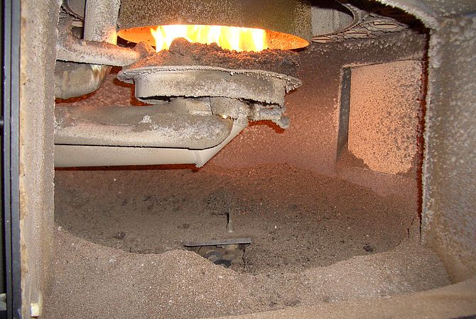 Der Kaminfeger überprüft die Verbrennungsrückstände