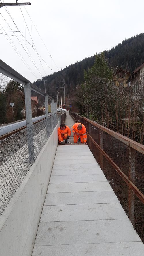 Dem Kommunalbetrieb gehen die Arbeiten nie aus. Die für diese Jahreszeit untypische Witterungslage lässt Spielraum für Unterhaltsarbeiten. Die Holzplatten beim Bahnwägli-Steg haben ausgedient und mussten ersetzt werden. Das Problem wurde nun dieser Tage in Eigenregie gelöst. Fleissig gossen unsere Wegmeister in den letzen zwei Monaten insgesamt 29 Betonplatten. Die massangefertigen Platten wurden nun verlegt. Das Ergebnis lässt sich sehen. Das Bahnwägli erstrahlt im neuen Glanz.