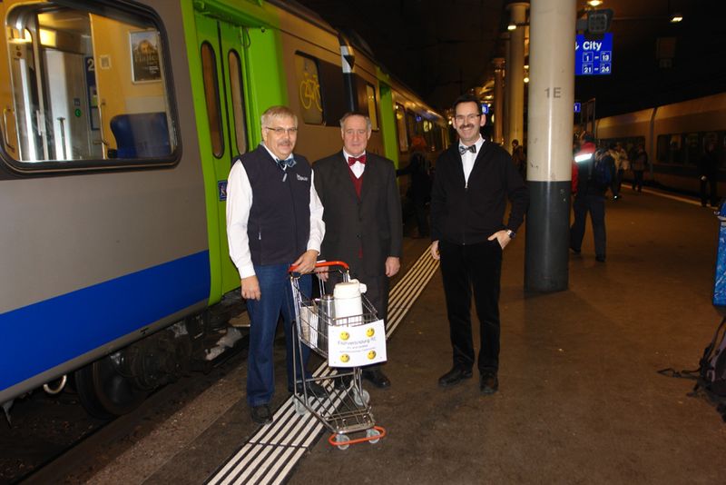Am Abend wurden die Pendlerinnen und Pendler am Bahnhof Trubschachen mit Glühwein empfangen, um nochmals auf den Frühzug aufmerksam zu machen.
