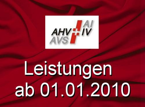 Seit diesem Jahr beträgt die monatliche Altersrente bei vollständiger Beitragsdauer mindestens 1‘140, höchstens 2'280 Franken. Bei Ehepaaren ist die Summe beider Renten auf 150 Prozent einer Individualrente begrenzt, d.h. auf Fr. 3'420 monatlich maximal. Die Renten werden auf den 1.1.2010 nicht erhöht.